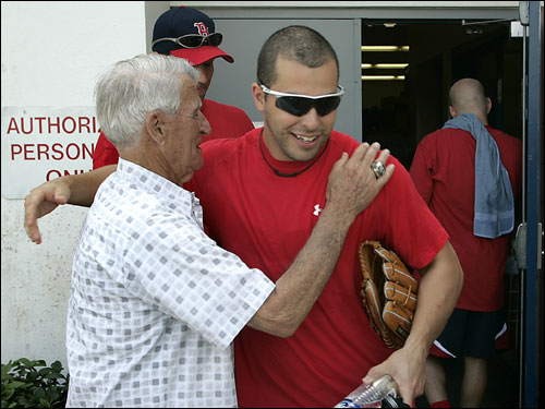 Jason Varitek is such a good team leader that he can even coax the Albino Cave Elf (scroll down to Flaherty, John) out of his dark, granite abode.